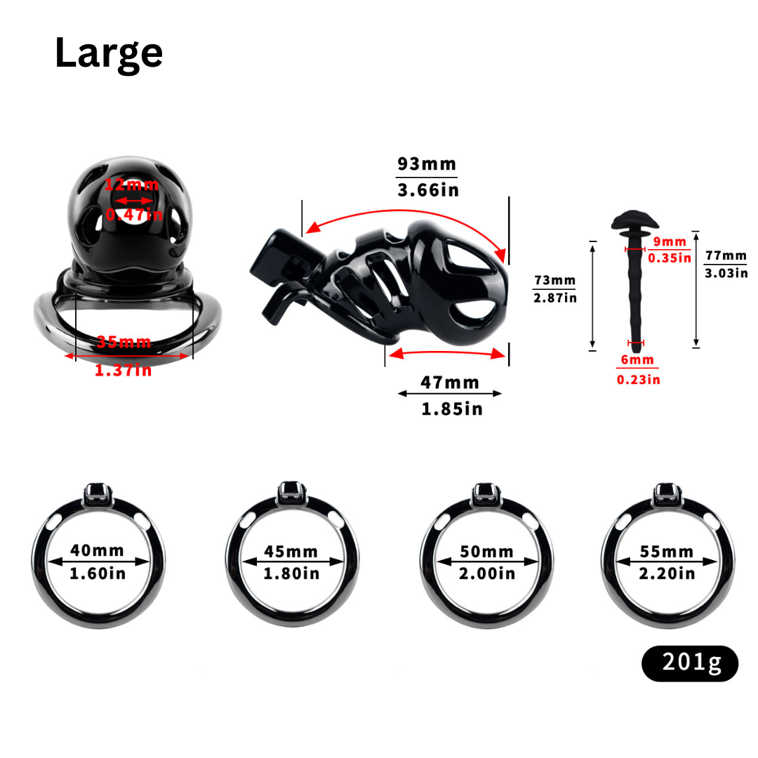 La jaula de castidad Cobra ventilada de resina y aleación de aluminio está diseñada para uso diario, comodidad y control seguro. Su diseño ventilado permite el flujo de aire, lo que facilita mantenerla cerrada durante largas horas sin irritación. La resina ligera se combina con una aleación de aluminio resistente para lograr un equilibrio perfecto entre comodidad y resistencia.