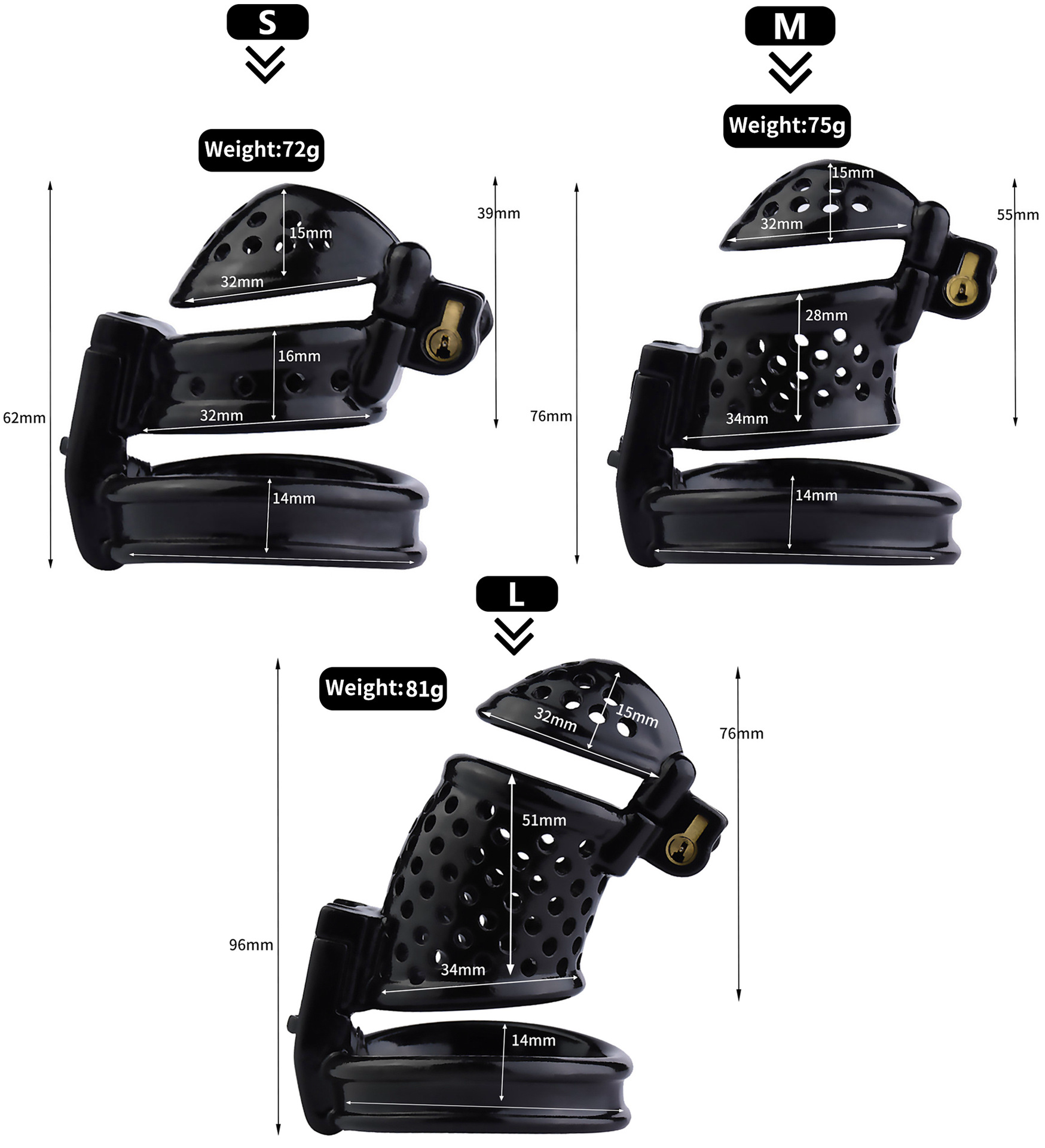 Deze zwarte kooi is gemaakt van eersteklas natuurlijke hars en is duurzaam en discreet, waardoor hij ideaal is om dagelijks te dragen onder elke outfit. De afneembare kap zorgt voor eenvoudige reiniging en onderhoud, terwijl het dual-lock-systeem ervoor zorgt dat je veilig blijft zonder enig ongemak.